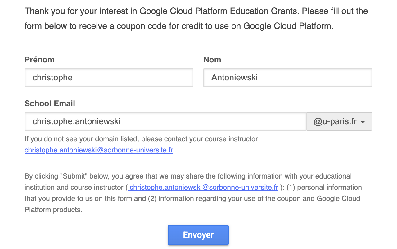 For this training, we have obtained $50 coupons for all students from the Google Cloud Education Program. These coupons will allow you to use the Google Cloud Engine infrastructure for the entire duration of the training and likely beyond, at no personal cost.