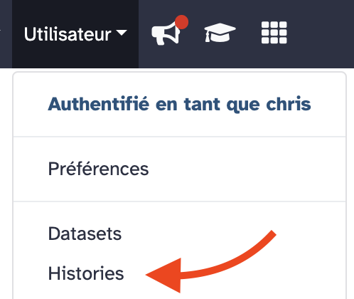 to the REFERENCEhistory. To navigate between your histories, you have many options, including the top menu "Utilisateurs":